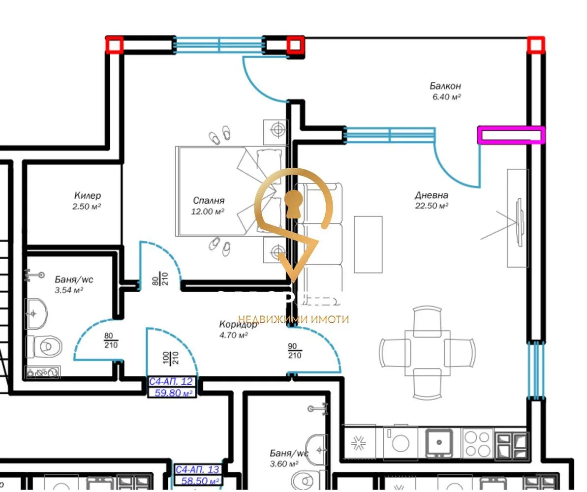 Апартаментът разполага с практично разпределение, което съчетава уют и функционалност. Просторният хол е идеален за почивка и развлечения, а светлинният поток, който навлиза през големите прозорци, създава усещане за простор и свобода. Балконът предоставя възможност за релаксация на свеж въздух и за наслада на прекрасни гледки.