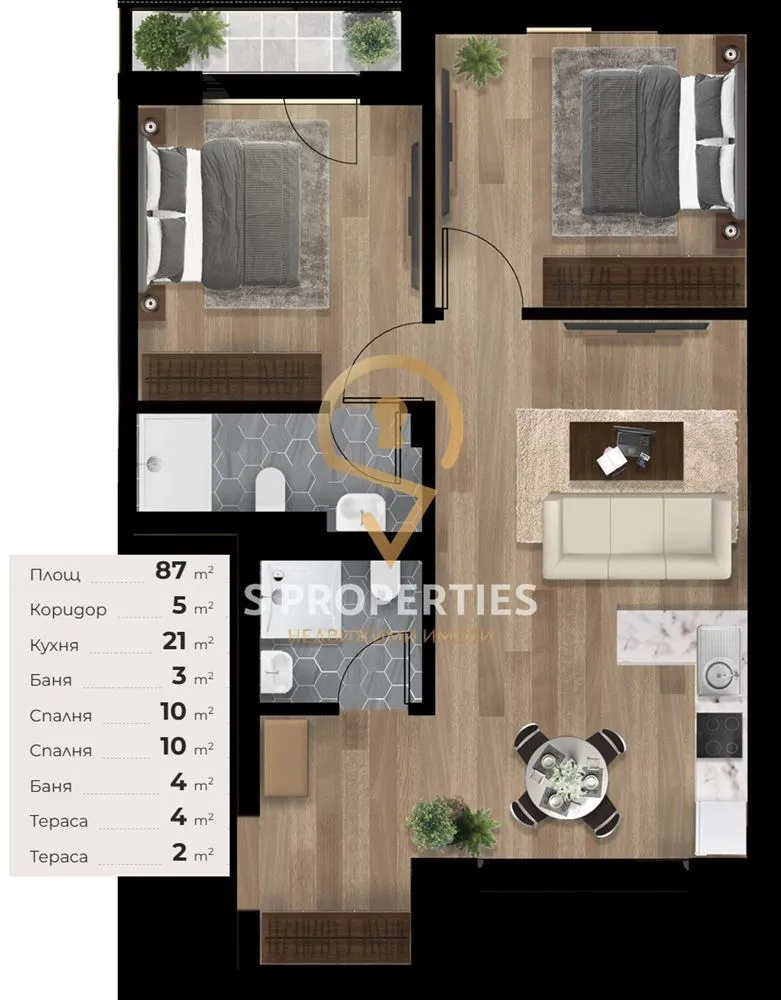 Предлагат се 5 вида къщи за продажба с модерни апартаменти, които могат да се комбинират при необходимост от повече пространство. Може да се възползвате от дизайнерския пакет и вземете стилен интериорен дизайн и мебели за вашия нов дом.