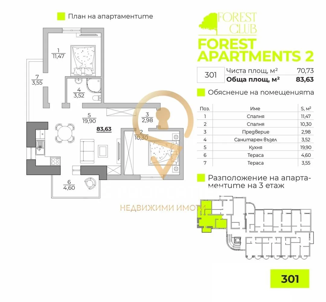 Агенция за недвижими имоти S PROPERTIES предлага за продажба тристаен апартамент в Forest Apartments 2.