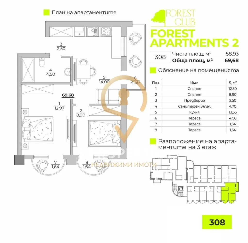 Агенция за недвижими имоти S PROPERTIES предлага за продажба тристаен апартамент в Forest Apartments 2.