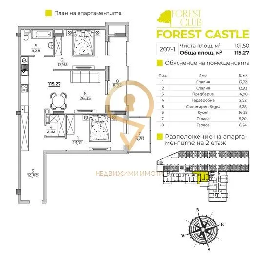 Агенция за недвижими имоти S PROPERTIES предлага за продажба тристаен апартамент в к-кс Forest Castle - Модерен „замък“ в гората, на територията на многофункционалния комплекс Forest Club.