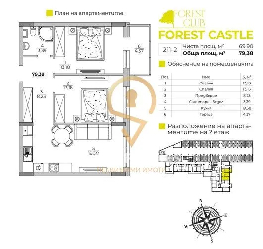 Агенция за недвижими имоти S PROPERTIES предлага за продажба тристаен апартамент в к-кс Forest Castle - Модерен „замък“ в гората, на територията на многофункционалния комплекс Forest Club.