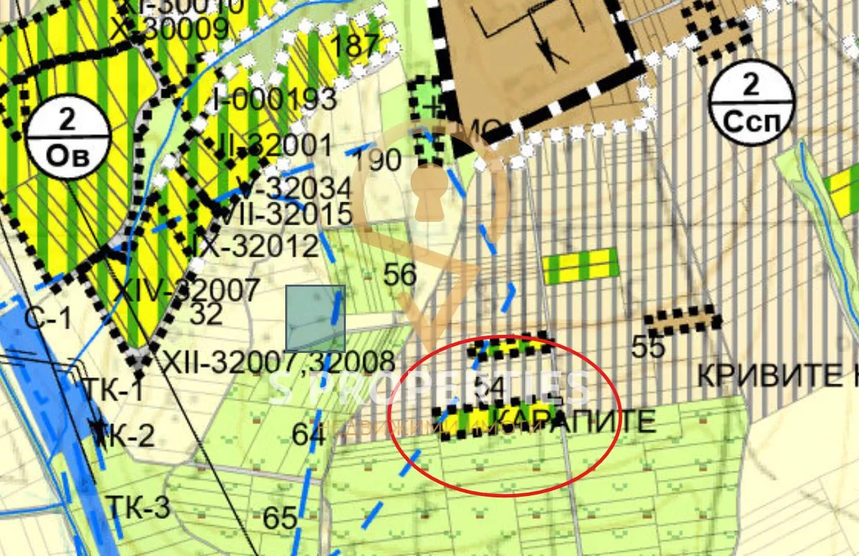 **Подходящ за инвестиция:** Парцелът е подходящ за различни проекти, например изграждане на комплекс от къщи. Попада в зона Ов2, с параметри : кинт 0,8, застрояване 40%, озеленяване 50%, височина 7м