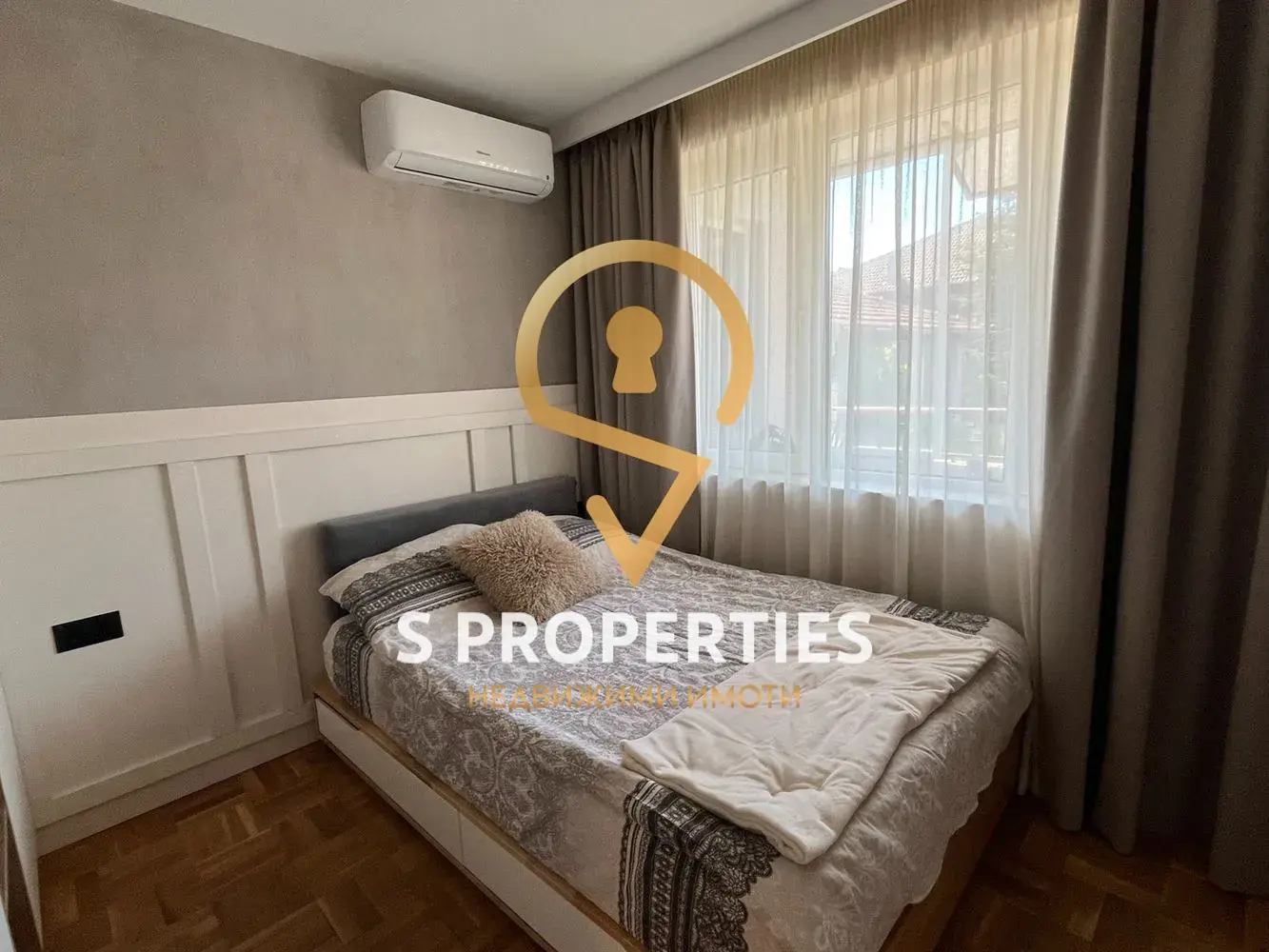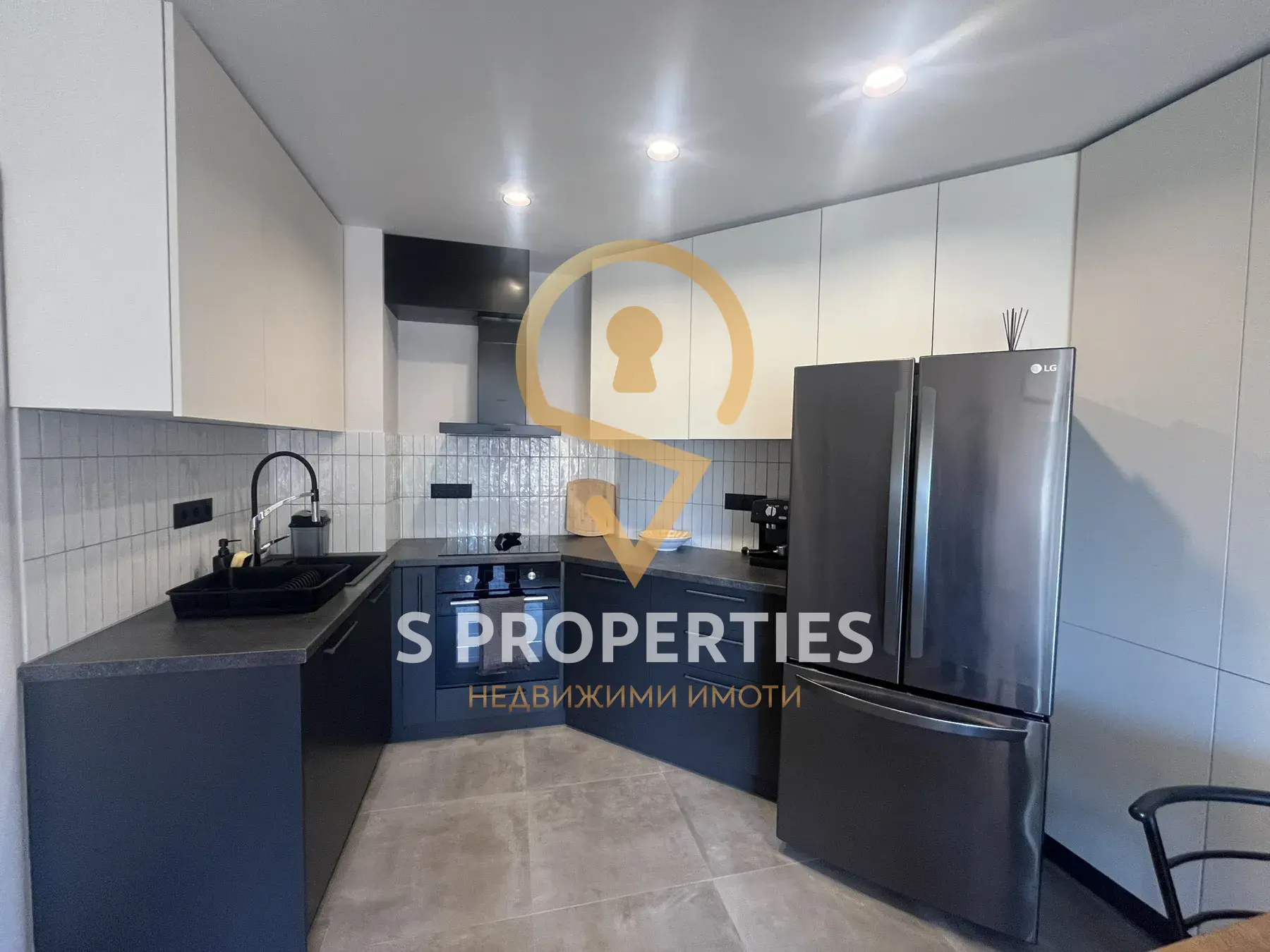 Всички мебели в имота са нови,интериорният дизайн е зашеметяващ,а електроуредите са от най-висок клас.Има обособено място за миялна машина по желание на наемателите.Отоплението и охлаждането се осъществяват чрез 3броя висок клас климатици,разположени във всяка стая по един.