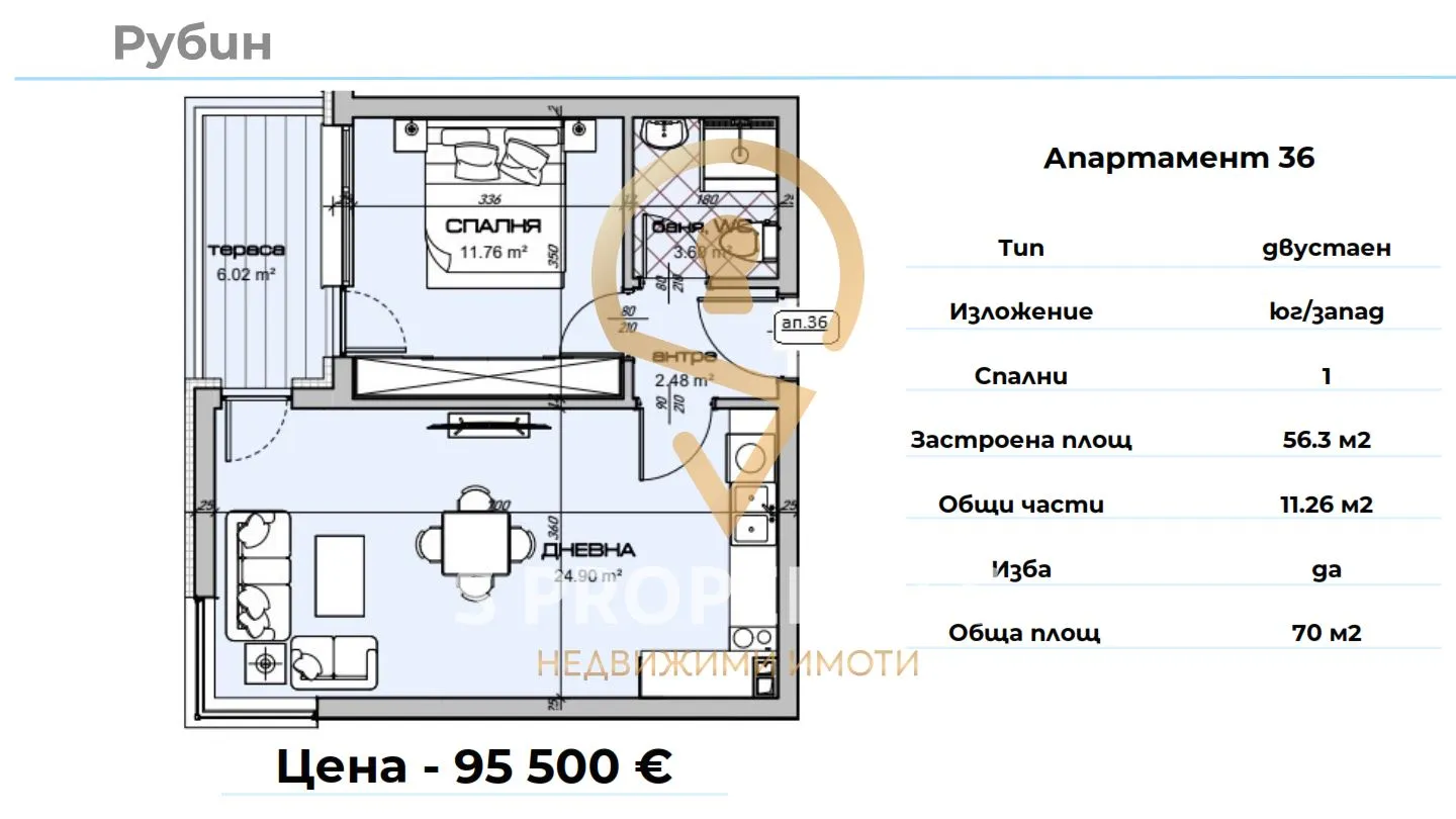 Агенция за недвижими имоти S PROPERTIES ви предлага двустаен апартамент - 70кв.м. във Владиславово.