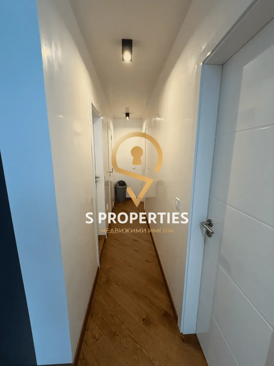 Апартаментът е изпълнен с внимание към всеки детайл – стилен интериор в неутрални тонове с дървесни акценти. Подовете са покрити с естествено дъбово дюшеме без прекъсвания между помещенията, създавайки усещане за цялост и уют. Стените са фино декорирани с венециански мазилки, а санитарните помещения са завършени с естествен декинг.