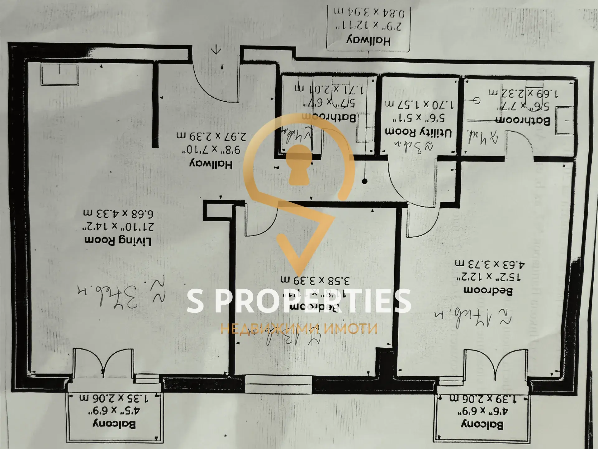 Разпределение на апартамента (108 кв.м / 96 кв.м. чиста площ):