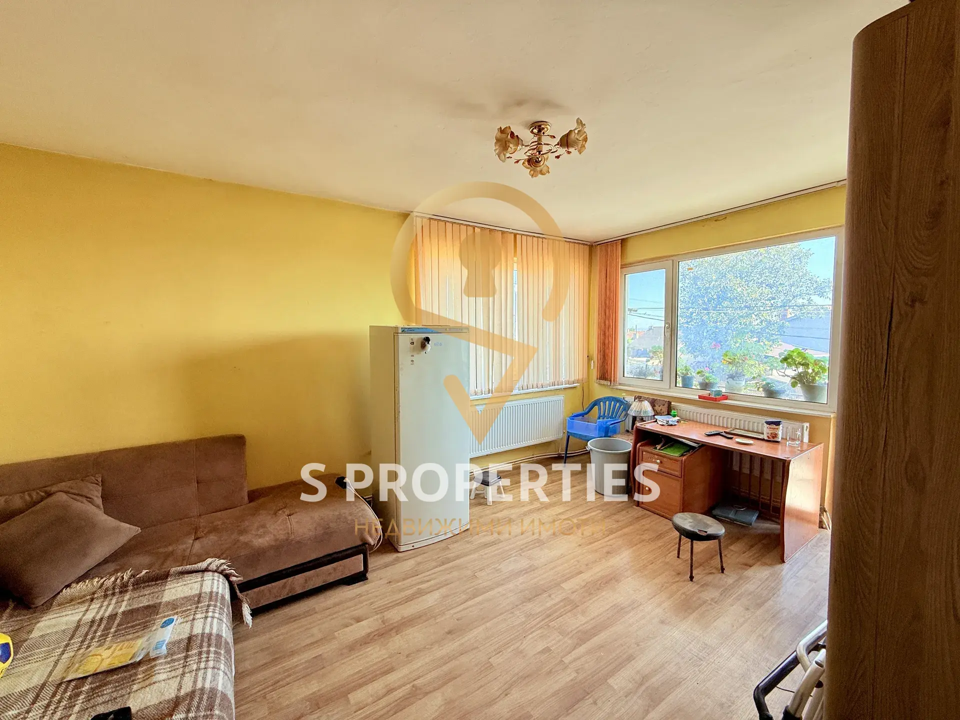 Поради функционалното разпределение на стаите имота предразполага обединението на кухня, трапезария и хол в една голяма Г-образна всекидневна + две спални.