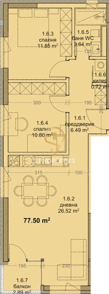 •  Брой спални: 2