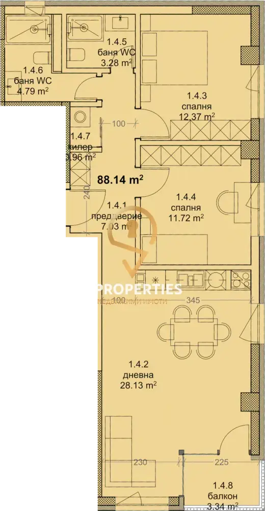 •  Брой спални: 2