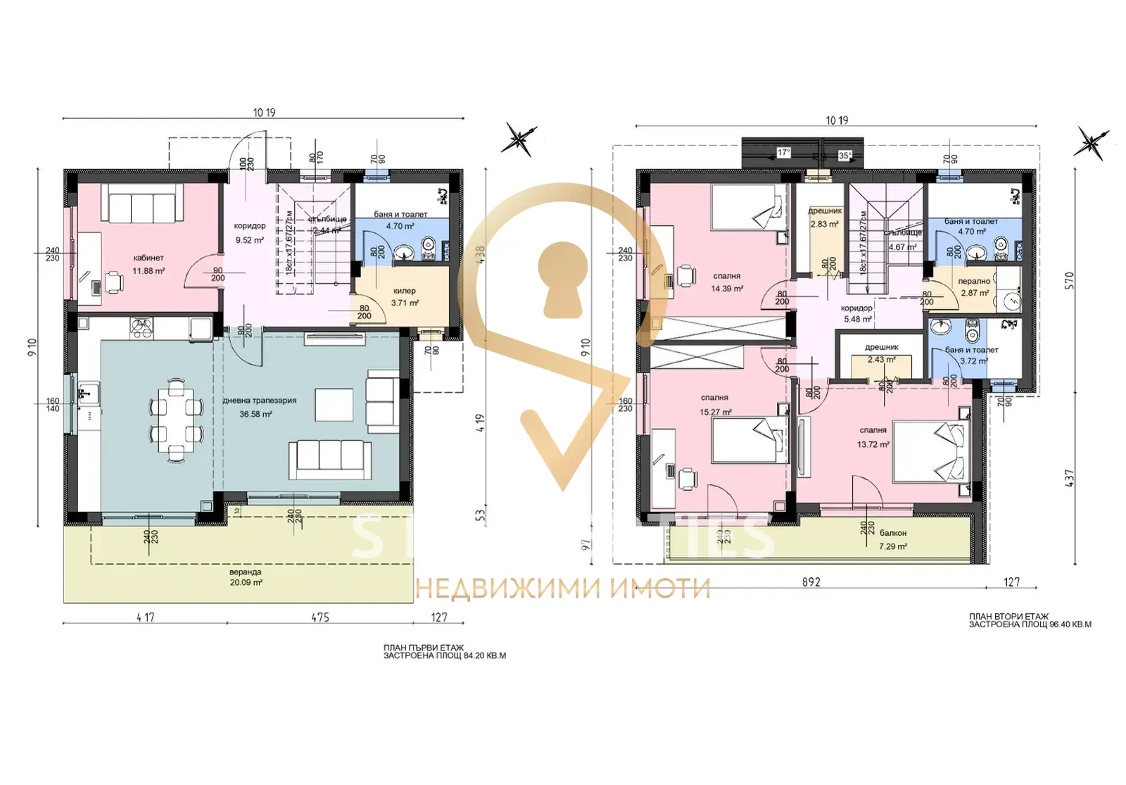 просторен дневен тракт,четири спални,техническо помещение,три бани с тоалет, перално помещение, дрешник;