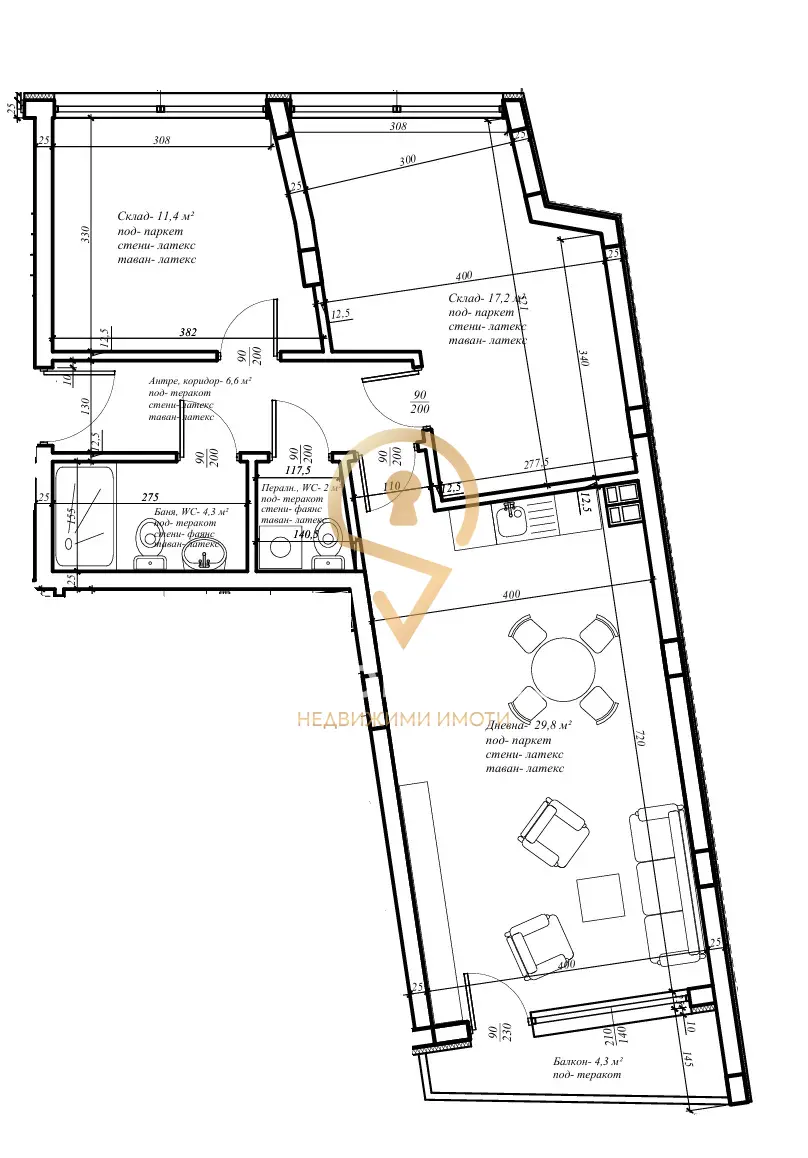 Жилищна сграда в Център,гр.Варна, Тристаен апартамент в нова сграда в Центъра Ап.5