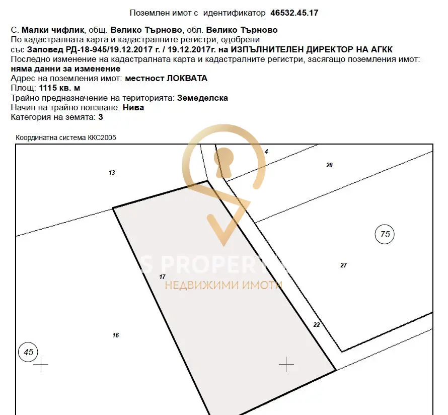 3. Поземлен имот 46532.36.45, община Велико Търново, с. Малки чифлик, м. ЧЕРНО ПОЛЕ,