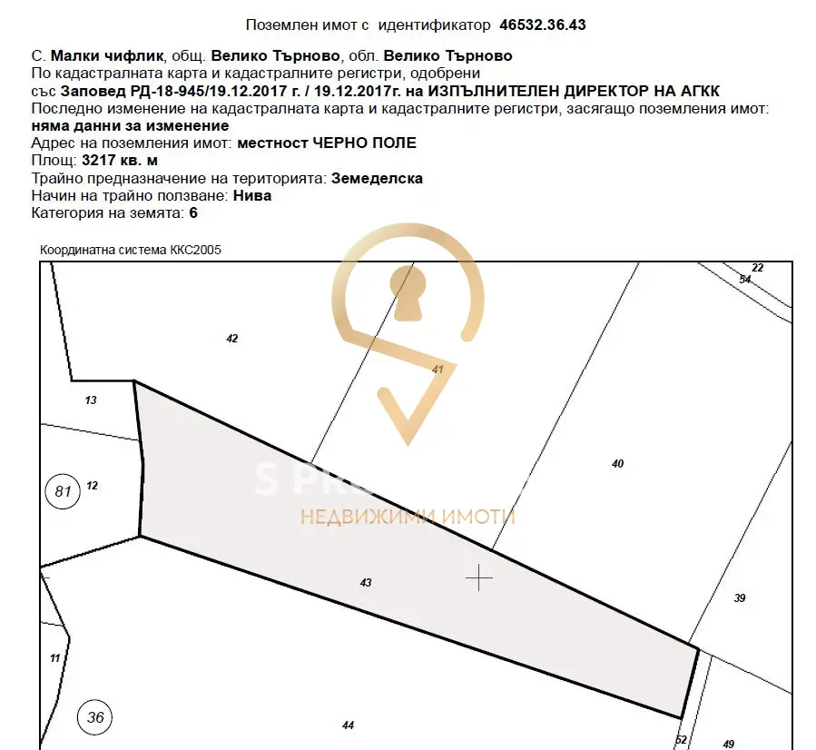 1. Поземлен имот 46532.36.43, община Велико Търново, с. Малки чифлик, м. ЧЕРНО ПОЛЕ,