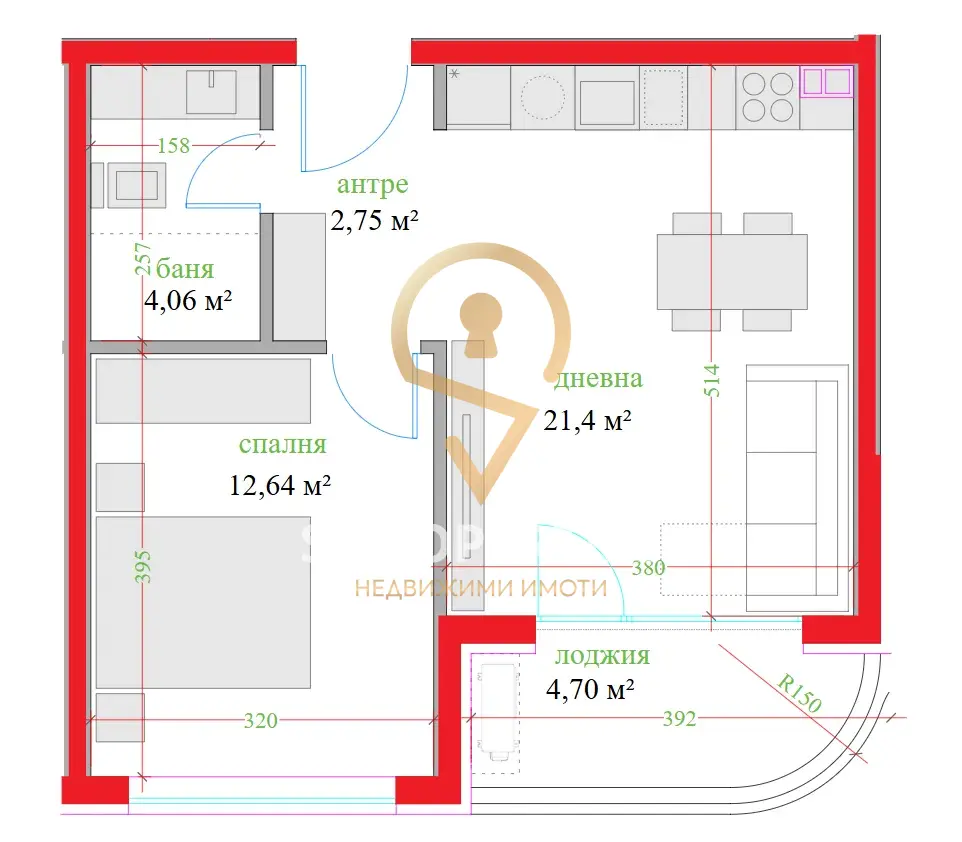 Жилището е с функционално разпределение, състоящо се от дневен тракт с кухненска част, просторна спалня, баня и тоалет, широка лоджия пред нея с гледка към морето, парка и басейна на Комплекса. Възможност за покупка на ПМ с цена 15 000 евро.