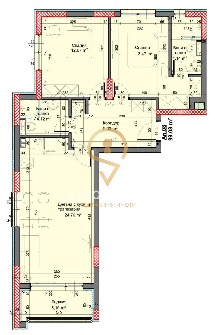 Прекрасен тристаен апартамент с хубави площи на стаите и функционално разпределение. Имота се състои от 2 спални, дневна с кухненски бокс и трапезария, 2 бани с тоалет, килер, коридор и лоджия. Обща площ 104,59 кв.м, което включва 89,08 кв.м чиста жилищна площ и 15,51 кв.м общи части. За повече информация и оглед - обадете се сега!