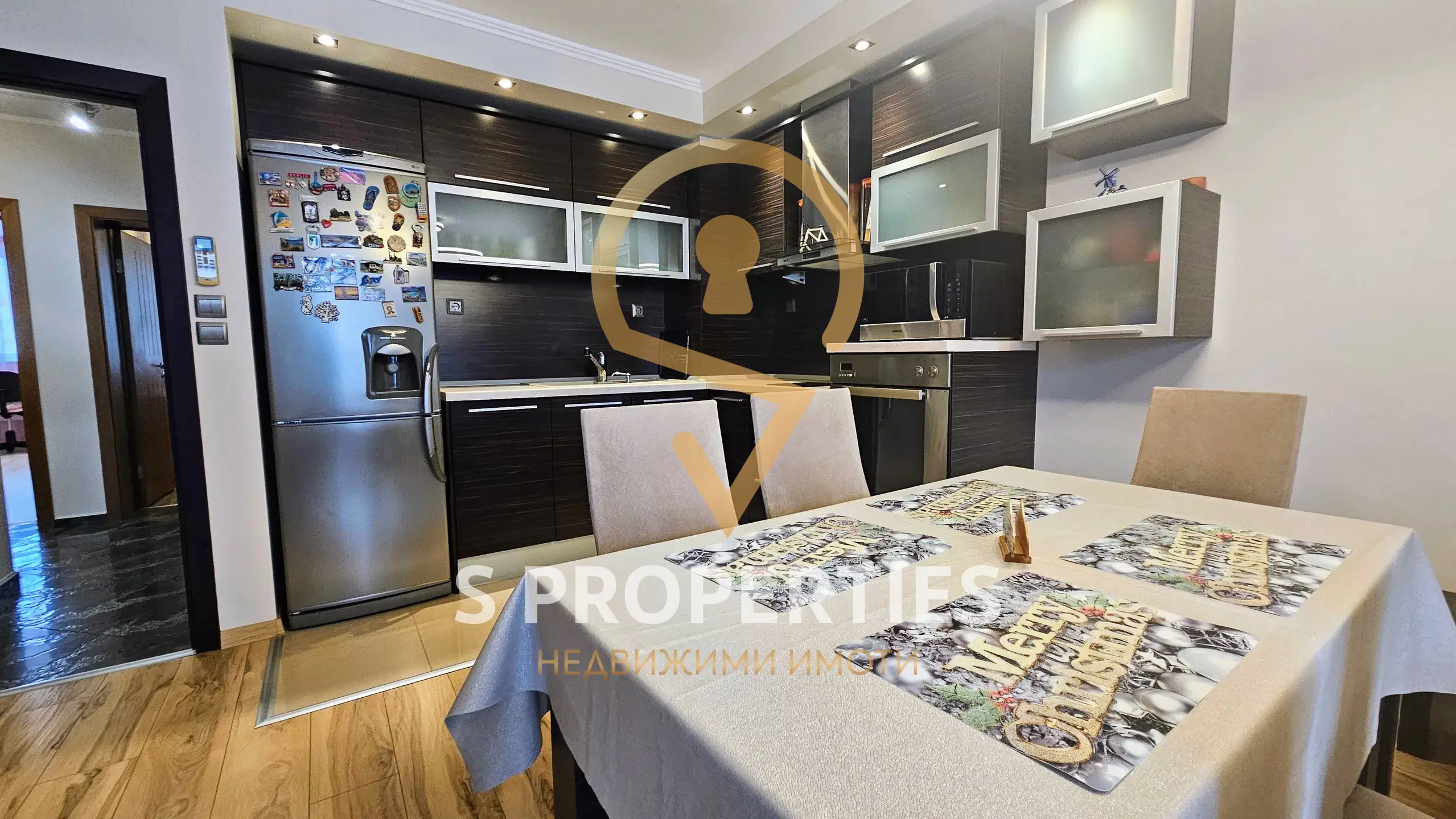 Имотът е обзаведен с висок клас меели и електроуреди, за допълнително удобство предоставя-сушилня и съдомиялна машини.