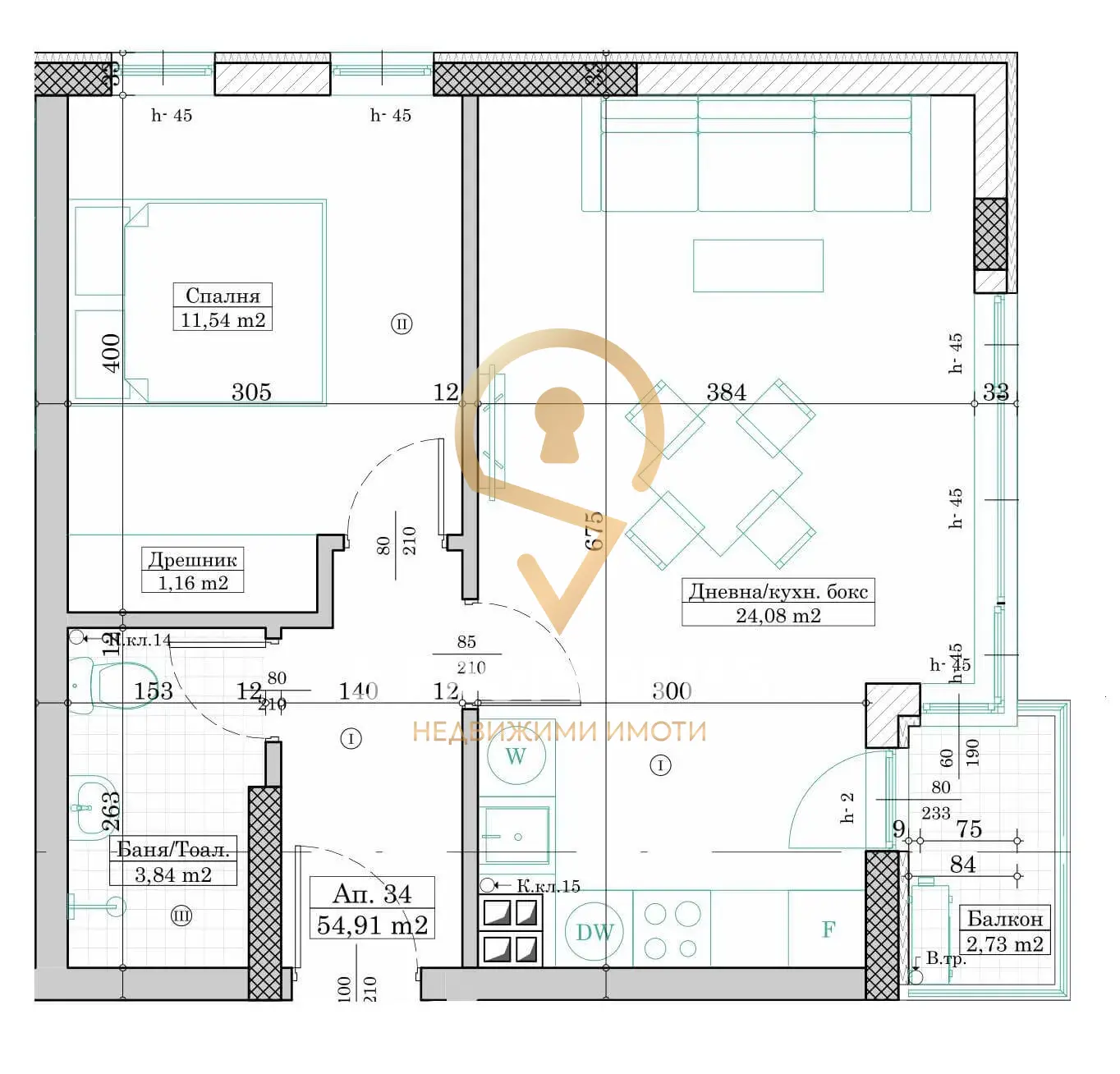 Имотът разполага с една спалня и една баня, а състоянието му е БДС, което предоставя възможност на новите собственици да го обзаведат според собствените си предпочитания. Изложението на апартамента е източно, което гарантира много естествена светлина през целия ден. Сградата е с асансьор, а достъпът е контролиран, което добавя допълнителна сигурност и удобство за живущите.