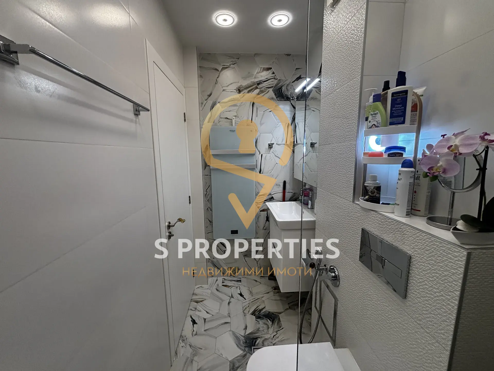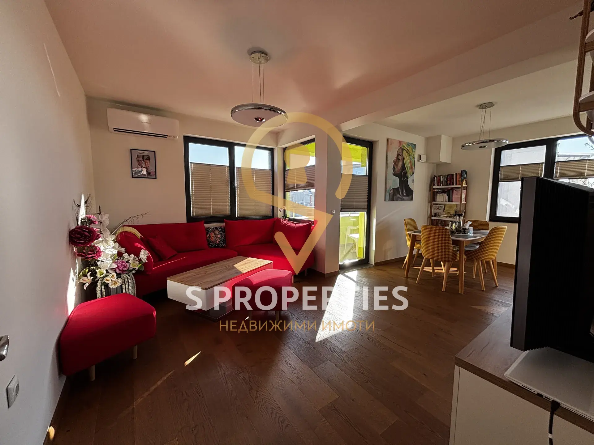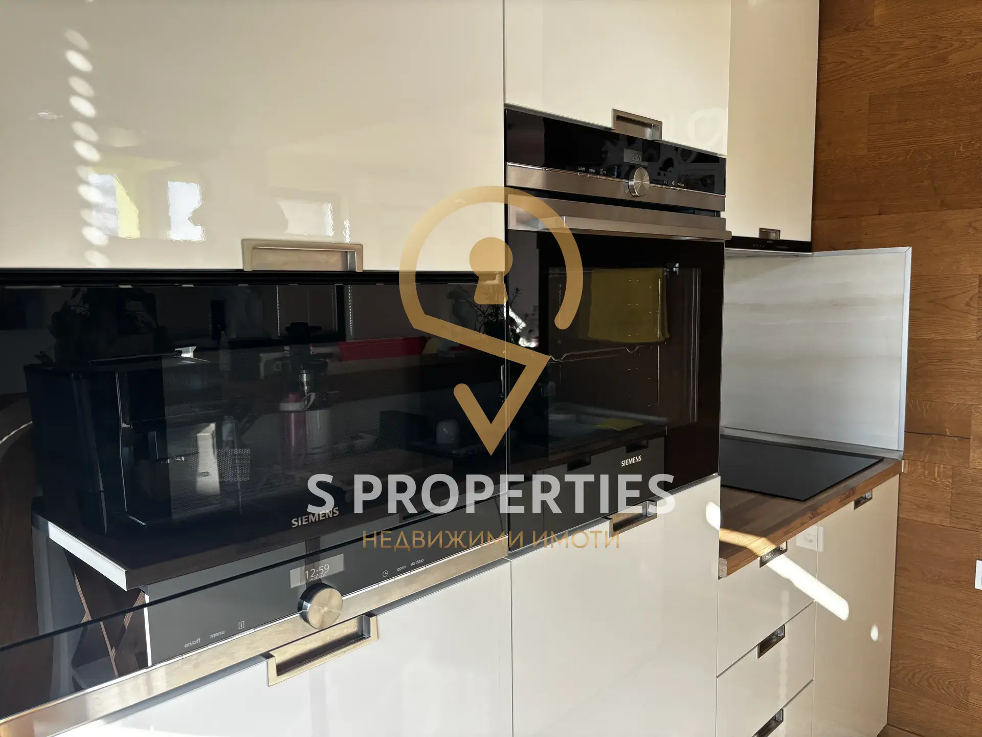 Апартаментът е в перфектно състояние, изпълнен с внимание към детайла и висококачествени материали: подови настилки от импрегниран паркет HARO и гранитогрес, стени с миеща влагоотблъскваща боя, изградена собствена вентилационна и пречистваща система за въздух, коригиращи блек-аут щори, климатици Mitsubishi във всички помещения, както и мебели, проектирани и изработени специално за този дом.