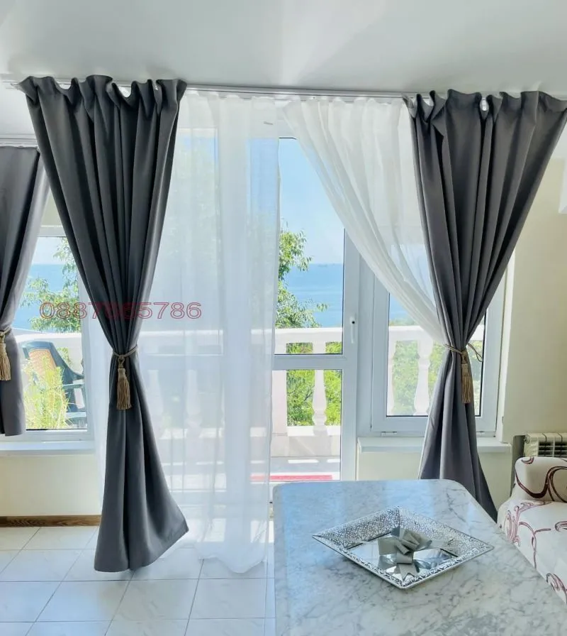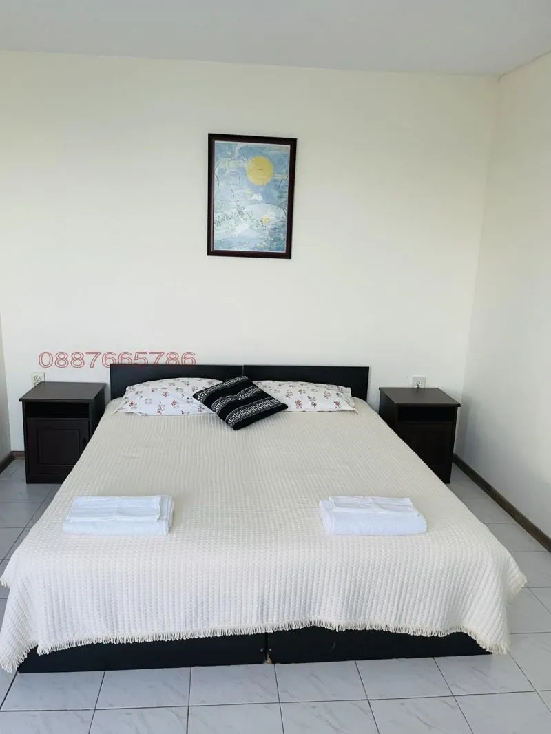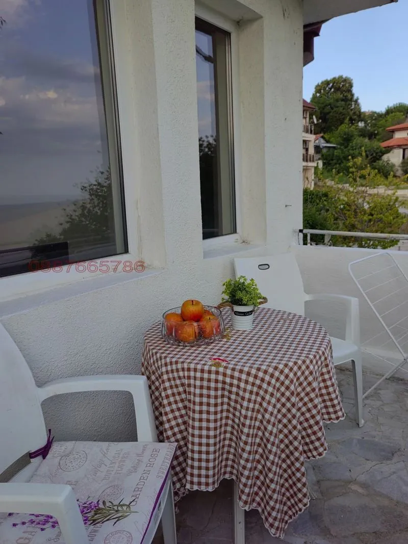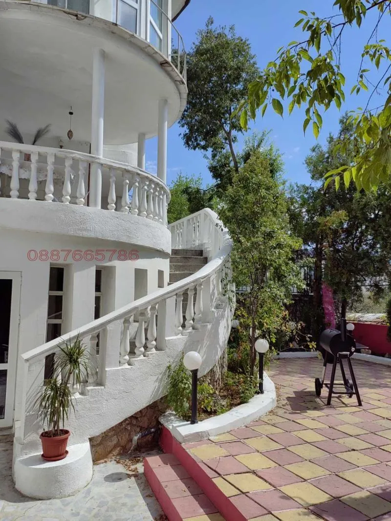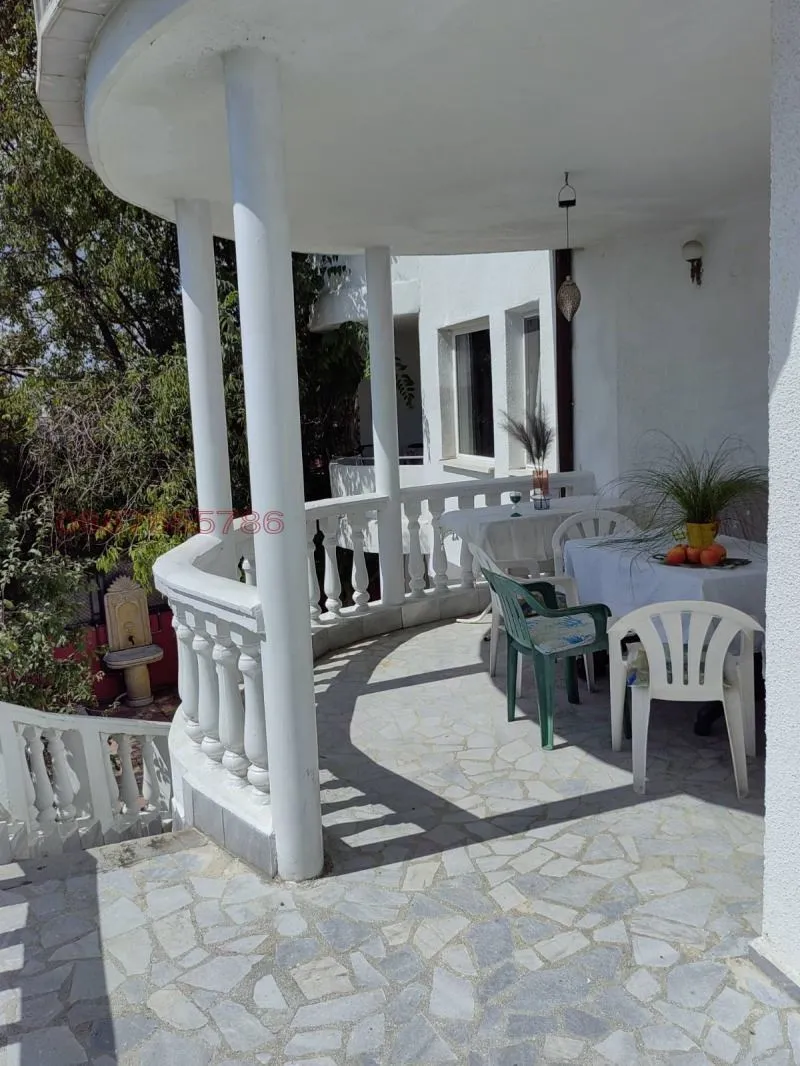 Дограмата в цялата къща е на немската фирма Коmmerling , има изградена инсталация за видеонаблюдение, СОД. Дворът е добре осветен, има паркинг за 5 коли, както и детска площадка, пясъчник и люлки. Дворът е озеленен с райграс, цветя и овощни дървета. В долната част на двора е обособена Английска градина с туи и рози, както и оригинална чешма в старинен европейски стил. Къщата е така ситуирана в парцела, че от всички страни има перфектна морска панорама. Подходяща е клиника, хотел, къща за гости. Подход към къщата - асфалтов път. Към къщата са монтирани соларни панели, които значително намаляват разходите за електричество. , тел.: 0887665786 Виж по-малко... Виж повече