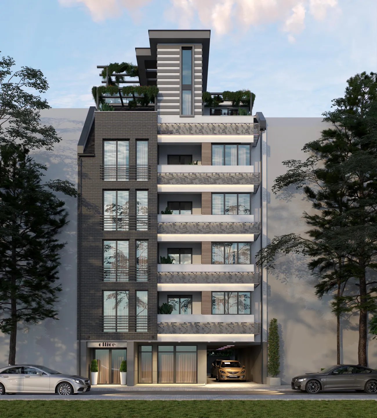 Сградата ще бъде комбинация от модерна бутикова архитектура и качествено строителство. За удобство на живущите ще разполага освен с подземни паркоместа, така и с гаражи.