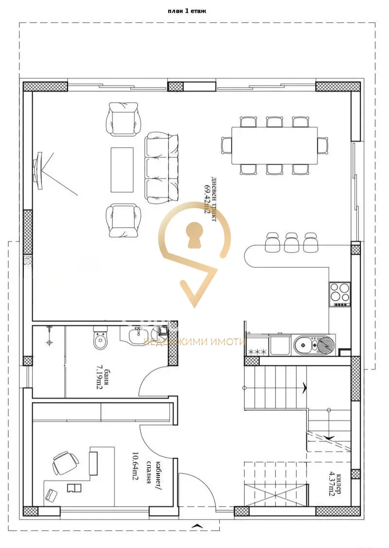 - Първи етаж (111 кв.м.):