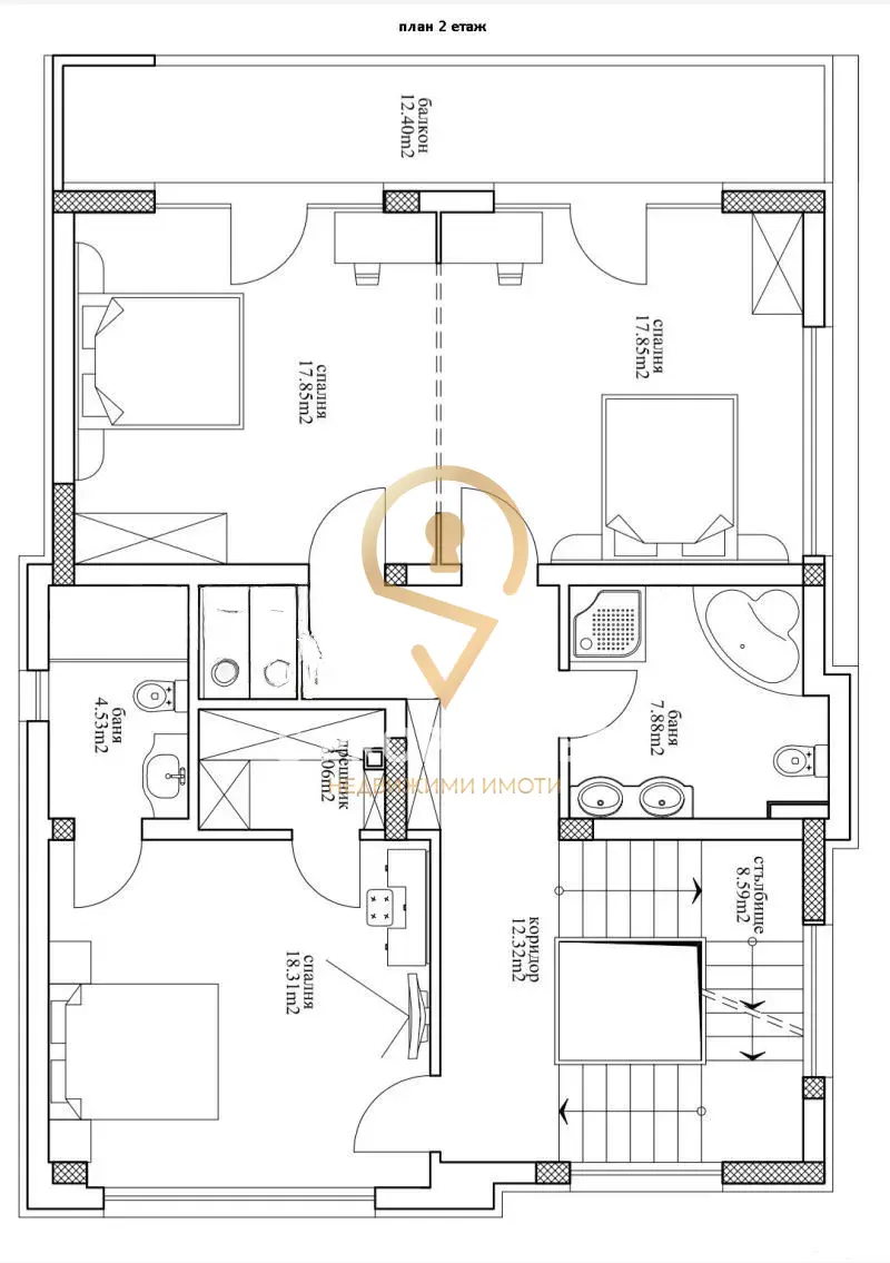 - Две спални (по 18 кв.м. всяка)