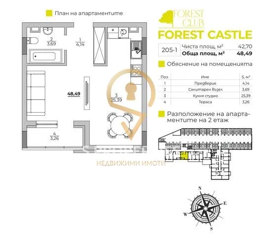 Агенция за недвижими имоти S PROPERTIES предлага за продажба двустаен апартамент в к-кс Forest Castle - Модерен „замък“ в гората, на територията на многофункционалния комплекс Forest Club.