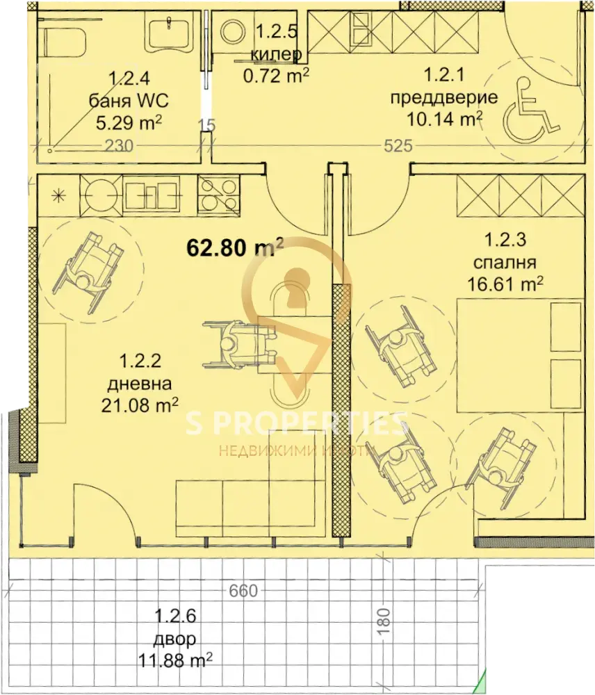 Агенция за недвижими имоти S PROPERTIES ви предлага двустаен апартамент в нова сграда в кв. Младост.