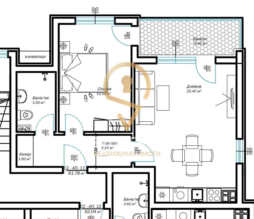 •  Вид на имота: Двустаен апартамент