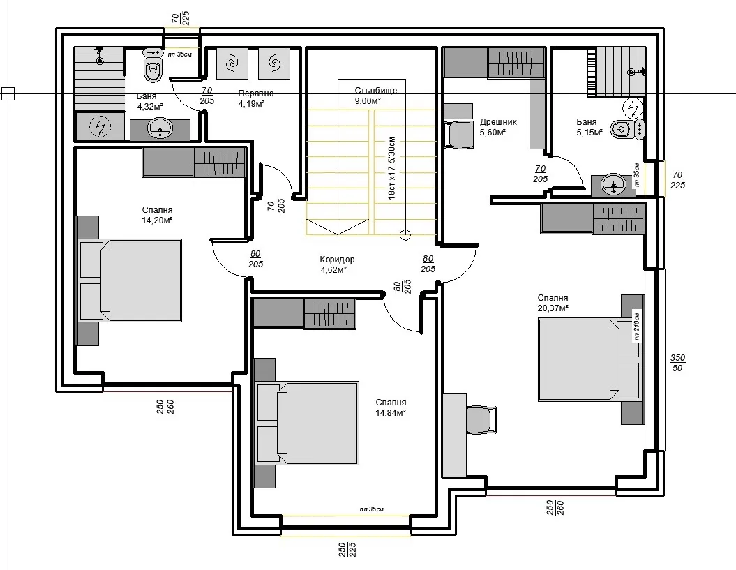 • Две допълнителни спални – по 15 кв.м всяка