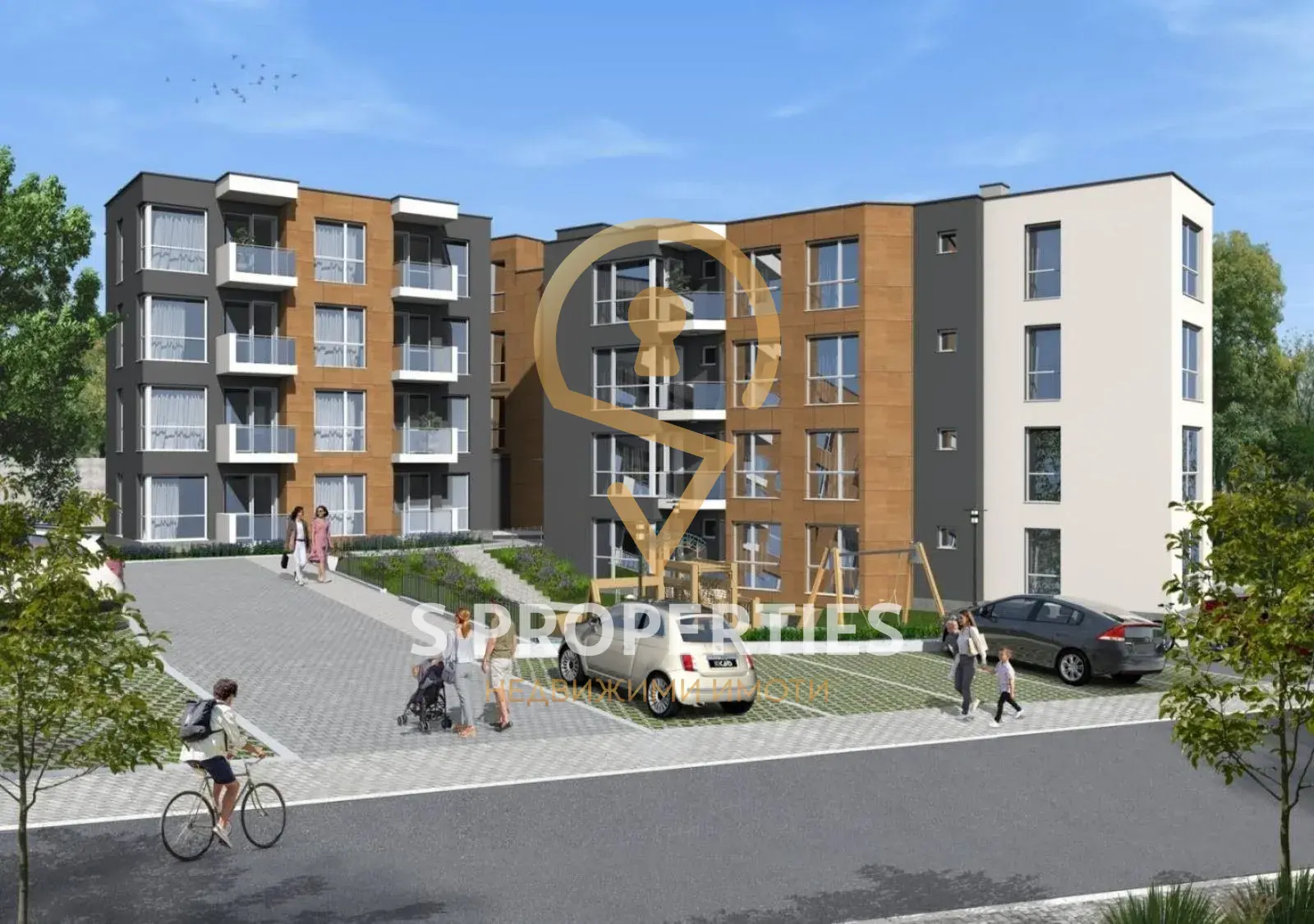 Просторен тристаен апартамент, състоящ се от дневна с кухненски бокс, две спални, баня с тоалетна (или две санитарни помещения – според разпределението), коридор и тераса/тераси.