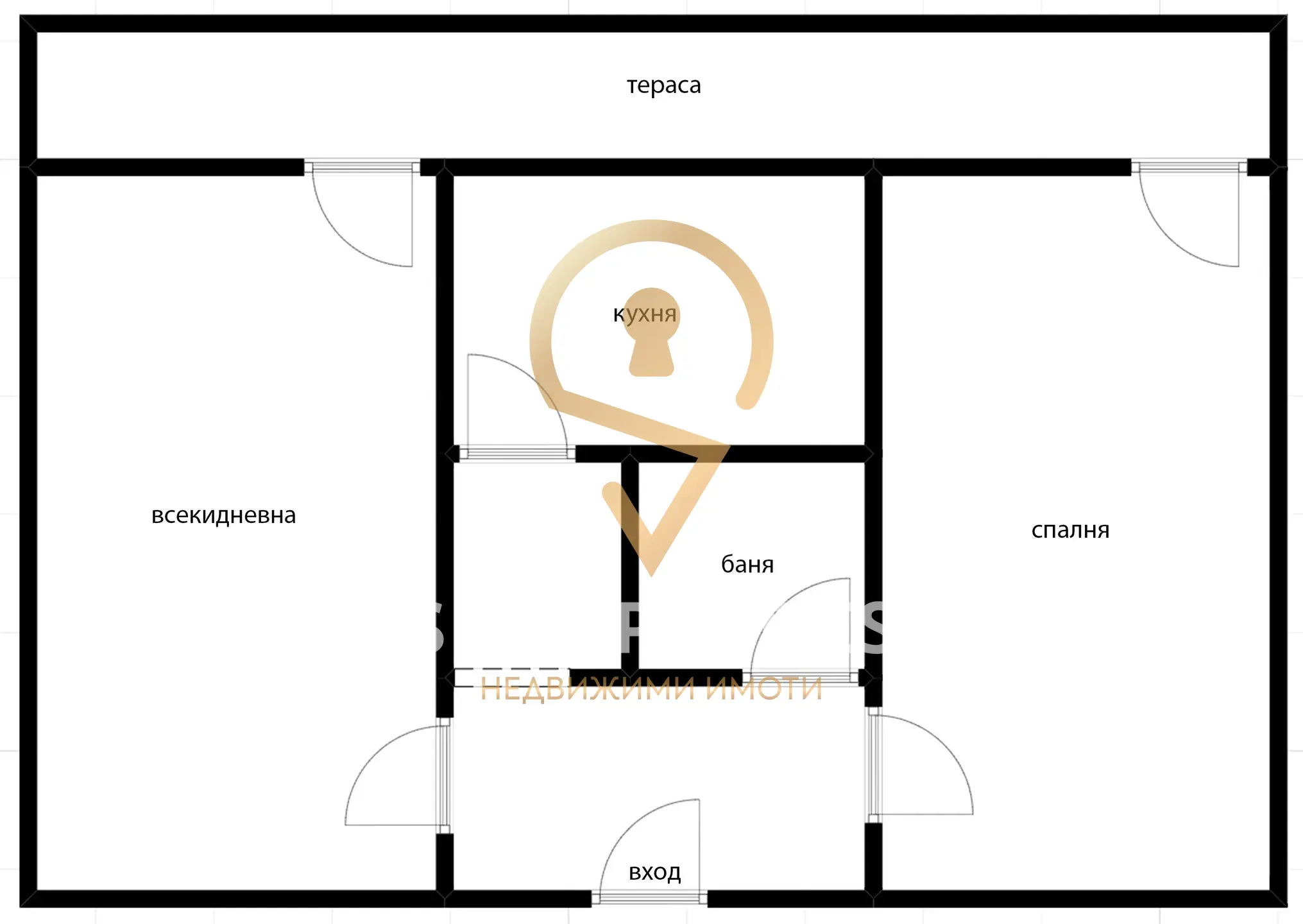 Имотът се състои от три самостоятелни стаи, две от които с площ около 20 кв.м всяка, отделна кухня с площ приблизително 8 кв.м, голям Г-образен коридор, баня с тоалетна и просторна тераса, разположена пред трите стаи.