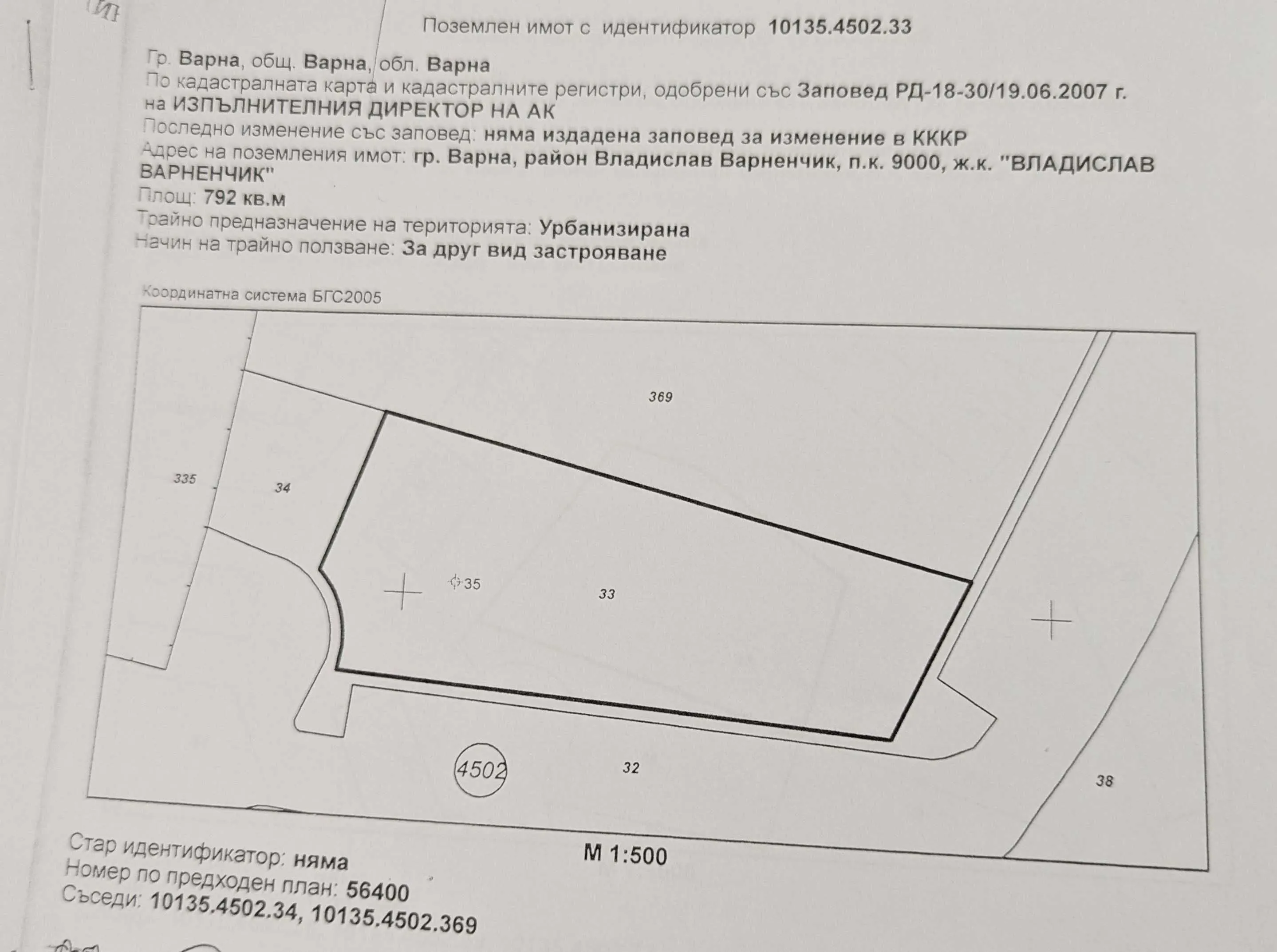 Продава се поземлен имот 10135.4502.33, област Варна, община Варна, гр. Варна, район Владислав Варненчик, п.к. 9000, ж.к. ВЛАДИСЛАВ ВАРНЕНЧИК,